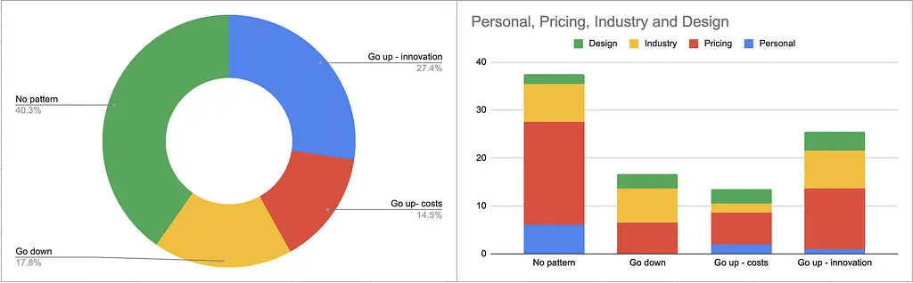 Respondents were roughly split, 42% saying prices would continue to go up and 40% saying there would be no clear trend. Only 18% expected prices to go down next year. Of the 40 people who expected prices to go up, 65% thought this would be innovation-driven, and 355 thought it would be cost-driven. Most of the people who thought that costs would drive prices up in 2026 came from one of the pricing groups.