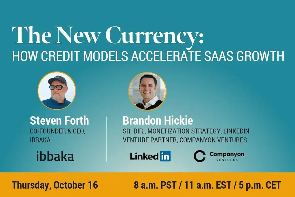 On October 16th, Ibbaka will host Brandon Hickie, Senior Director of Monetization Strategy at LinkedIn and a Venture Partner at Companyon Ventures, for a deep dive into credit models.