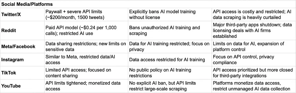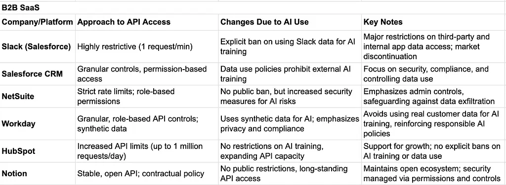 We surveyed how different B2B SaaS vendors and social media platforms are changing API access in response to AI.