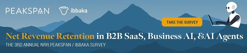 PeakSpan Capital and Ibbaka are beginning work on our 3rd annual survey of Net Revenue Retention performance in B2B software (B2B SaaS, Business AI, and AI Agents).