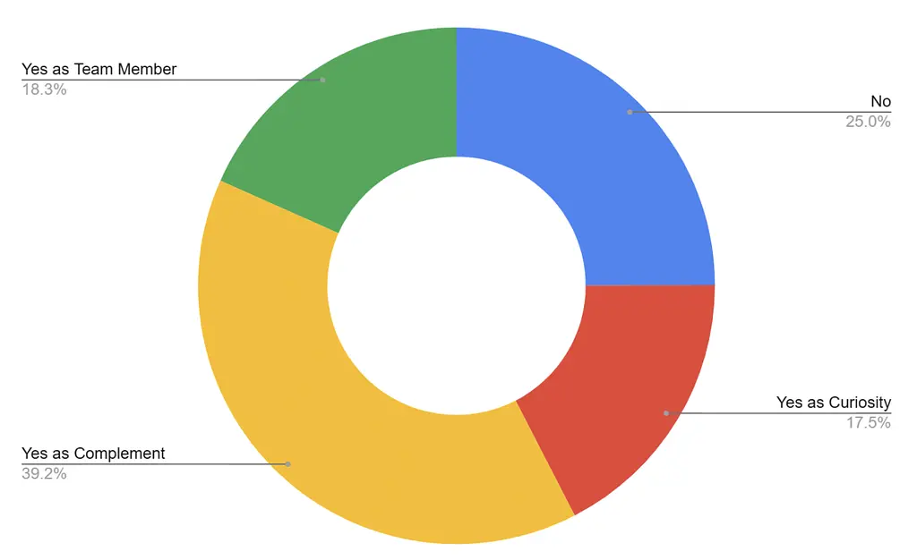 Nearly 40% of respondents indicated they would hire an AI agent as a complement to their existing team, while only 25% expressed skepticism about the value proposition. This distribution suggests that the pricing community has moved beyond the initial skepticism phase and is actively considering practical applications for AI agents.
