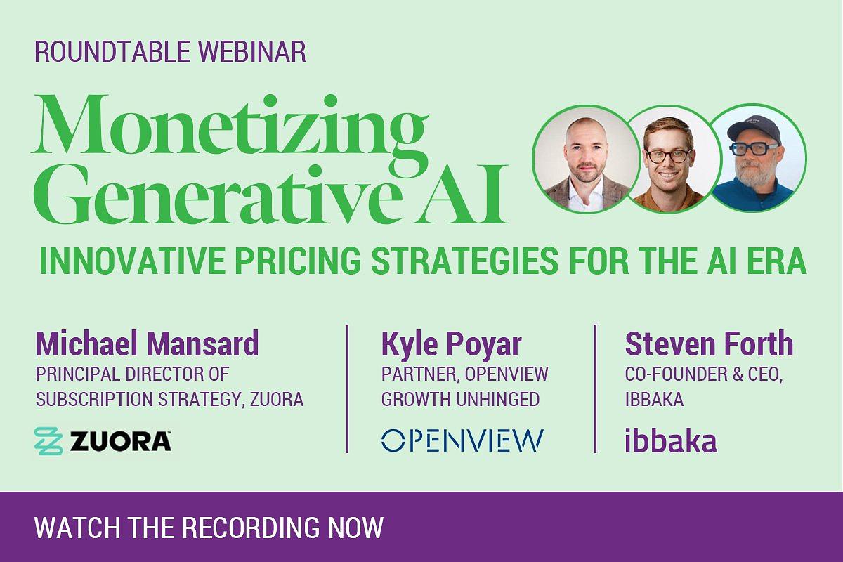 Ibbaka had the pleasure of hosting an enlightening roundtable discussion on Monetizing Generative AI, featuring two industry luminaries: Michael Mansard from Zuora and Kyle Poyar from OpenView Partners.